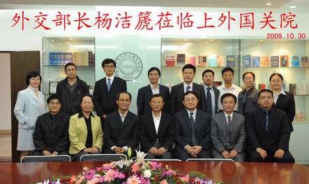 2009 10 30 上午,中共中央委员、外交部部长杨洁篪在校党委书记吴友富、校长曹德明、中东所所长朱威烈等人的陪同下,来我院参观、指导工作。总支书记武心波率全体教职员工热烈欢迎杨部长的到来。