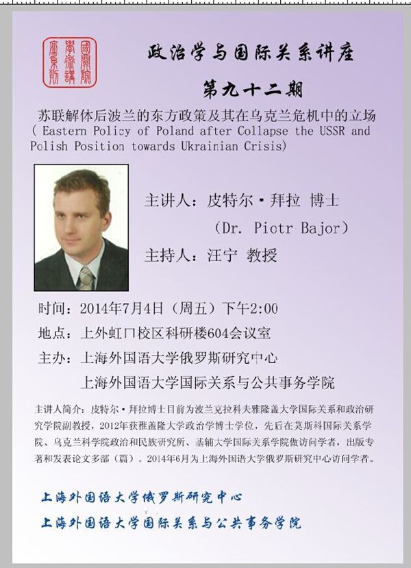 政治学与国际关系学术讲座第九十二期预告【07月04日】