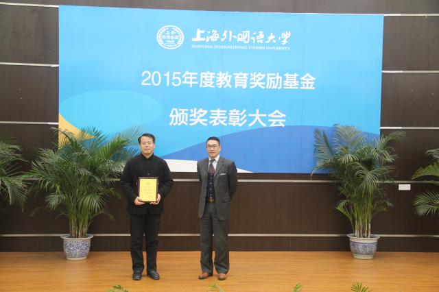 2015年12月29日下午,上海外国语大学在松江校区图文西厅召开了2015年教育奖励基金颁奖表彰大会。raybet雷电竞首页获得先进集体奖三等奖。郭树勇院长代表学院领取奖牌,并作为颁奖嘉宾为获得张乃新奖的学生代表颁奖。