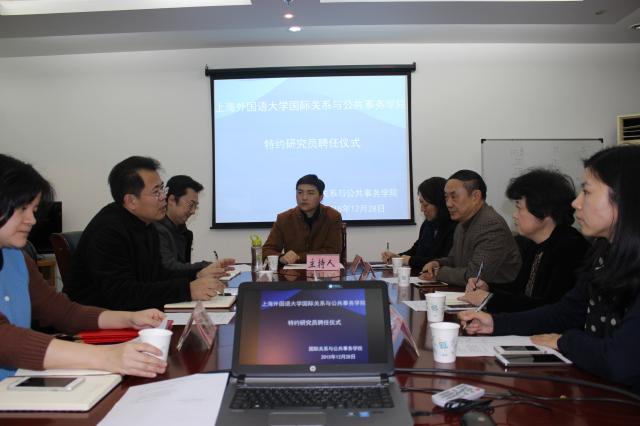 上海市政协常委、对外友好委员会主任道书明,市政协常委、对外友好委员会副主任王禄宁和专职副主任孙小双等来雷竞技官方入口调研,就进一步加强双方的合作提出指导意见。raybet雷电竞首页院长郭树勇教授、院长助理张磊副教授等出席。