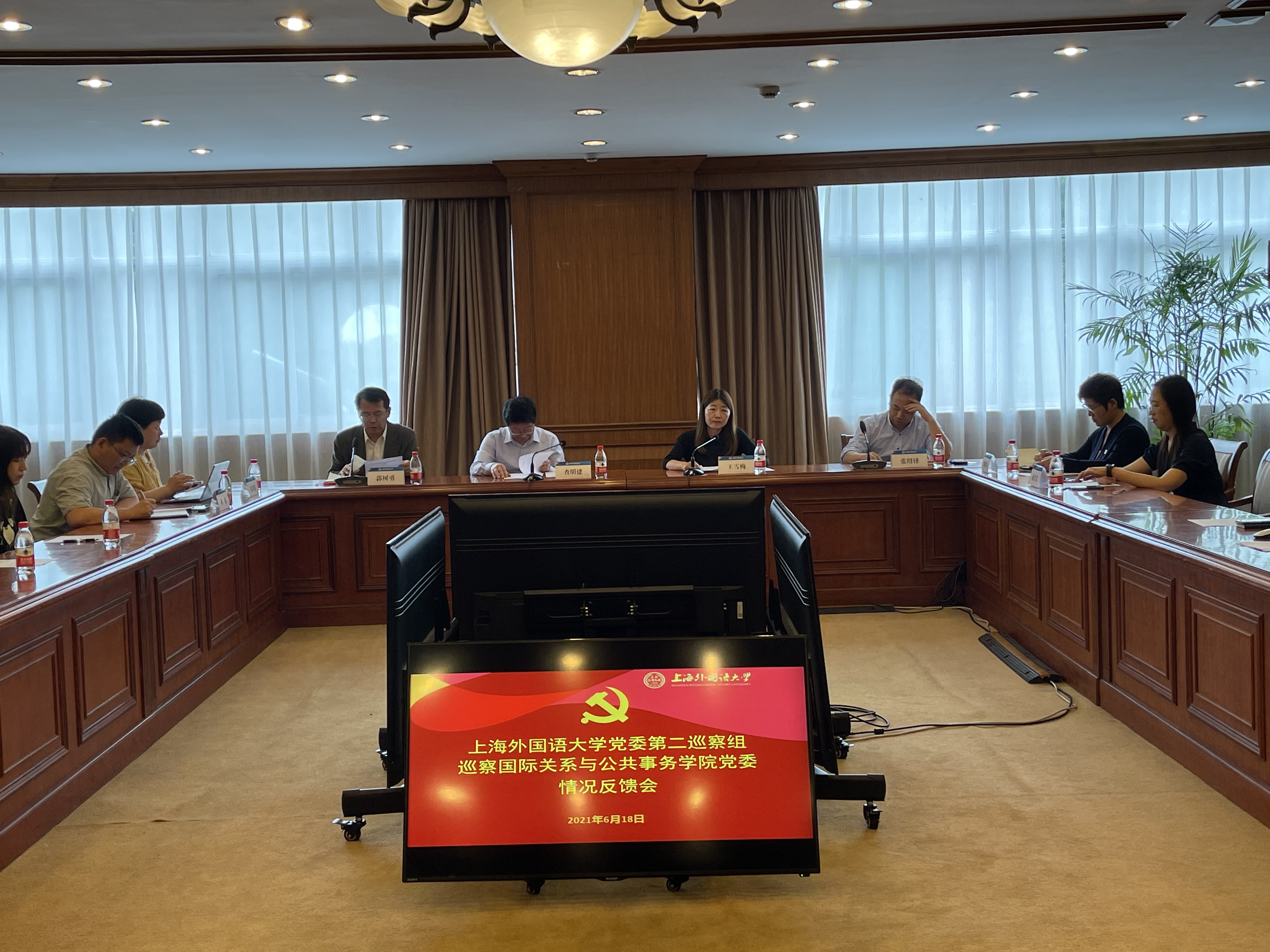 根据校党委统一部署,近日,上海外国语大学党委第二巡察组向raybet雷电竞首页党委反馈巡察情况。2021年6月9日,上海外国语大学党委第二巡察组组长王雪梅向党委书记张绍铎、院长郭树勇进行个别反馈,会上校党委副书记、纪委书记、巡察工作领导小组副组长钱玲传达校党委指示精神并开展全面从严治党工作谈话。2021年6月18日,王雪梅代表上海外国语大学党委第二巡察组进行大会反馈。联系校领导查明建副校长传达校党委指示精神并对巡察整改工作提出要求。张绍铎作表态发言,郭树勇主持会议。