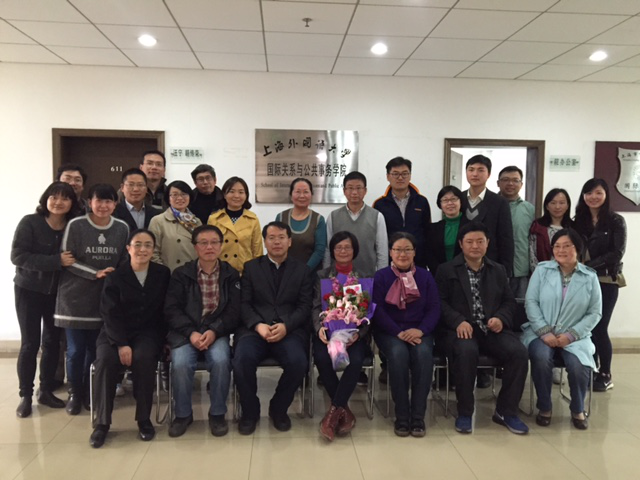 2016年4月1日,我院陈敏华教授光荣退休欢送会在虹口校区国关学院604会议室举行,学院房叶臣书记主持会议,全院老师都参加了会议。郭树勇院长和房叶臣书记高度评价陈教授对政治学学科建设曾经所做的贡献,感谢陈敏华教授对学院组建等工作的支持,对于陈教授选择不再申请延聘从事教学科研、希望如期退休的决定表示理解和尊重,并祝愿陈教授常来常往、身体健康,过好愉快的退休生活,继续关心学院建设。汪宁研究员、戴启秀研究员、钱皓教授、胡传荣研究员、谭再文副研究员、王前老师等相继发言,共同回忆了他们与陈老师共同为学院建设而努力的光辉岁月。会后学院全体成员与陈老师合影。(王璐)