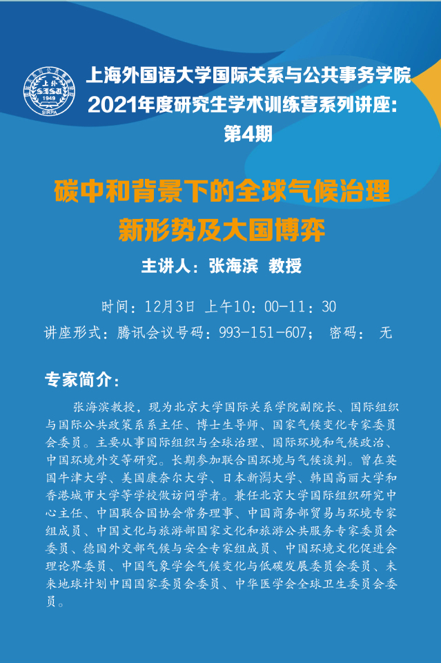 主题:碳中和背景下的全球气候治理新形势及大国博弈