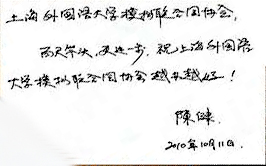 2011年11月24日参加浙江大学主办的泛长三角地区模联大会,上外模联代表团囊获最佳代表、最佳合作、最佳立场文件等多项大奖,主办方授予上外模联代表团最佳组织奖;