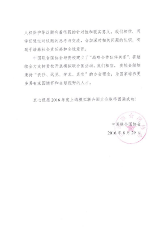2016年12月参加浙江大学泛长三角地区模拟联合国大会,获最佳立场文件奖。
