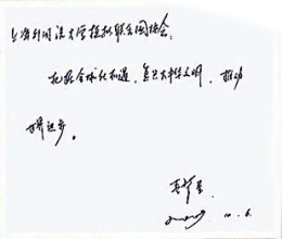 2006 年10月参加北京模联大会,囊获优胜队伍奖及未来领袖奖,并在会后与时任外交部部长李肇星进行了交谈;