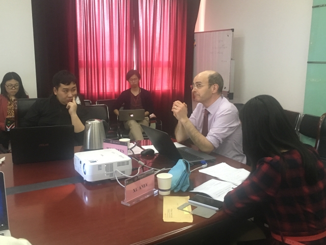 郭树勇院长接待了Rees教授。他代表我院师生欢迎Rees教授到访上外,并向Rees教授介绍了我院政治学学科建设、本硕博雷竞技在线登录体系和国际化工作,以及在政治学、国际关系、区域国别研究等领域中所取得的成绩。Rees教授向郭院长对我院的热情招待表示感谢,并详细介绍了诺丁汉大学政治与国际关系学院的教学、科研和海外合作情况。双方就两院在国际关系硕士双学位项目、暑期学校、教师与学者互访、联合培养博士等方面开展合作交换了意见并进行了深入交流。
