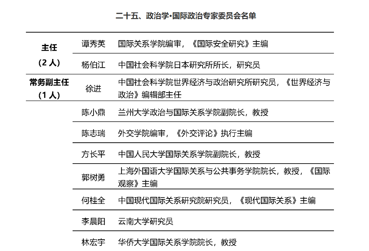 近日,中国社会科学评价研究院公示了27个学科的中国人文社会科学期刊评价专家委员会(2022)委员名单,雷竞技官方入口院长郭树勇教授入选“政治学与国际研究类期刊评价专家委员会”委员。该委员会共有国际关系类成员23人、政治学类成员25人。中国人文社会科学期刊评价专家委员会由中国社会科学评价研究院筹建,由全国有代表性的同业专家组成,旨在改进完善学术期刊评价体系,充分发挥同行专家在期刊评价中的作用。