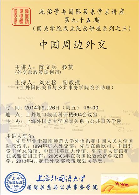 报告人简介:先后毕业于湖南师范大学外语系和中国人民大学国际政治系,1994年进入外交部,先后在西欧司、中国驻爱丁堡总领馆、中国驻英国大使馆、驻南非大使馆和驻欧盟使团工作。2005-06年在英国伦敦经济学院留学。2013年4月起任外交部政策司参赞。