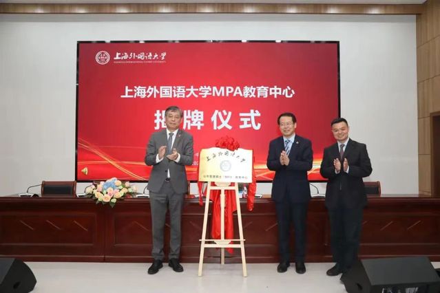 随后,上海外国语大学MPA教育中心揭牌仪式举行。姜锋、江和平以及郭树勇等人一同为中心揭牌。