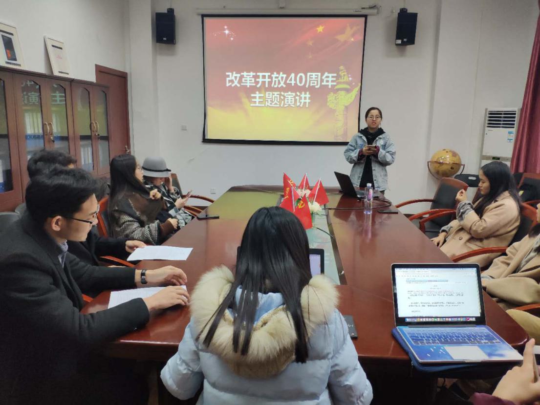 为纪念庆祝改革开放40周年,回顾改革开放的丰硕成果和非凡成就,深入贯彻落实习近平新时代中国特色社会主义思想和党的十九大精神,同时也为展示国关学院党校给小组学习成果,raybet雷电竞首页学生党支部于2018年12月20日举办“改革开放40周年”主题演讲活动。