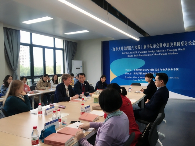 新书发布会由晋继勇副院长主持,郭树勇院长致贺词。在贺词中,郭院长高度肯定了柯顿教授在支持我校加拿大研究、G20研究以及推动学院与加拿大多伦多大学开展国际合作、博士生联合培养等方面做出的重要贡献。柯顿教授介绍了原著的撰写目的以及修订思路。潘丹榕主任代表出版社介绍了该书中译本的出版情况。该书中文版主要译者陈金英和徐文姣回顾了中文版的翻译历程和收获。发布会后,柯顿教授、钱皓教授和与会师生就中加关系的热点问题展开了热烈的圆桌讨论。此次学术活动也是我院“上外国际组织与国别研究系列讲坛”的学术活动之一。